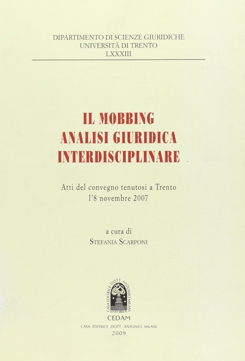 Il mobbing - Analisi giuridica interdisciplinare - Atti del convegno tenutosi a Trento l' 8 novembre 2007