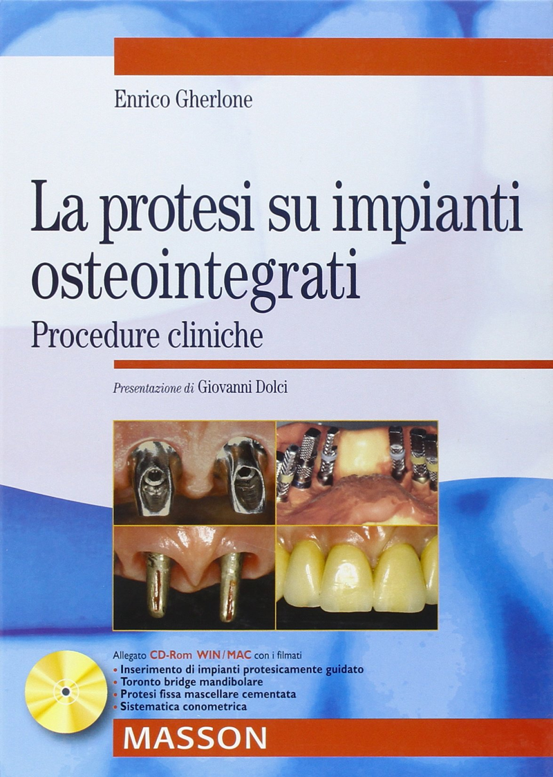 Scopo di questo volume è quello di illustrare in modo didattico, con un' ampia iconografia esemplificativa, le principali operatività della protesi implanto supportata alla luce delle più recenti acquisizioni in materia e delle metodiche più accreditate. L' impronta dei capitoli è principalmente " protesica ", pur lasciando ampi spazi al protocollo chirurgico, che particolarmente in ambito di progettazione e di decisione strategica nella dislocazione delle fixtures, assume una rilevanza particolare.Il cd Rom allegato presenta filmati commentati relativi a interventi e procedure protesiche.