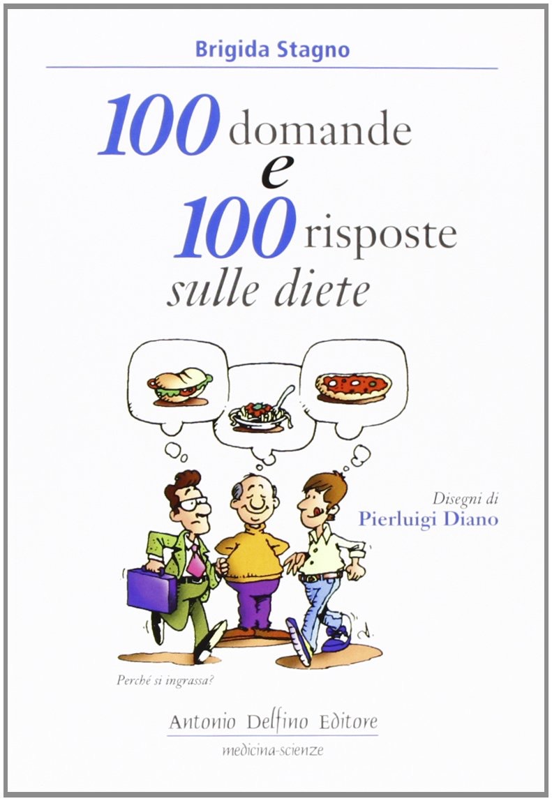 Diete drastiche, rinunce, paura di ingrassare, possono rendere il cibo un nemico da combattere, soprattutto nei più giovani. Un’alimentazione equilibrata può diventare, al contrario, uno dei piaceri della vita, ma, soprattutto, un prezioso alleato per la nostra salute. Da diversi anni il legame cibo-salute è diventato chiaro e importante per il benessere fisico: la corretta alimentazione si è ritagliata un posto di primo piano non solo nella lotta all’obesità, ma anche nella prevenzione di alcune malattie, come quelle cardiovascolari, metaboliche e tumorali, che spesso ne sono la conseguenza. Viceversa, abitudini alimentari scorrette possono danneggiare fortemente la salute: nei paesi industrializzati l’obesità, dovuta all’alimentazione eccessiva e ipercalorica, è ormai un problema globale, che coinvolge, purtroppo, anche i bambini, favorendo lo sviluppo sempre più precoce di molte patologie, una volta appannaggio esclusivo dell’età matura (come il diabete di tipo II) e di alcuni tumori, come quello del colon-retto o della mammella. Malgrado le nuove conoscenze scientifiche e le incessanti campagne sull’educazione alimentare, oggi si mangia decisamente ancora troppo, ma soprattutto ci si muove sempre meno. La dieta, parola che significa semplicemente “modo di vivere”, in medicina indica uno schema alimentare ottimale da affiancare alla lotta alla sedentarietà, deve essere equilibrata e adattarsi, non solo alle diverse età della vita, ma anche alle differenti situazioni fisiologiche.Perché questo libro? Ho voluto riportare le domande più frequenti, che da anni mi rivolgono i pazienti e le risposte più semplici, con l’obiettivo di chiarire i dubbi più comuni e stressare il concetto di stile di vita sano e di prevenzione, che passa anche attraverso una costante attività fisica e l’esclusione del fumo. La selezione di 100 argomenti, per me fondamentali e presentati sotto forma di domande, facilita la lettura di chi si avvicina per la prima volta a questo tema. Non ho tralasciato il problema dell’alimentazione nelle diverse malattie, che possono trarre un enorme vantaggio dall’assunzione di determinati alimenti e dall’esclusione di altri