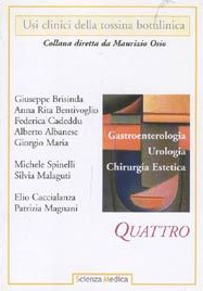 Contenuti: PARTE I - GASTROENTEROLOGIA DA TOSSINA AD AGENTE TERAPEUTICO- Azione sulla muscolatura liscia gastrointestinaleIL SISTEMA NERVOSO ENTERICOANATOMIA DELL'APPARATO GASTROINTESTINALE- Anatomia dell'esofato e dello sfintere esofago inferiore- Anatomia anorettale e del pavimento pelvico-- Il serbatoio rettale-- Attività motoria degli sfinteri anali e del pavimento pelvico-- Sensibilità anorettale-- Attività riflessa e controllo nervoso volontario-- Il muscolo puborettale e la continenza fecaleAPPLICAZIONI IN GASTROENTEROLOGIA- Disfagia orofaringea- Disturbi della motilità esofagea e dello sfintere inferiore- Altri disturbi della motilità esofagea- Gastroparesi- Stenosi ipertrofica del piloro- Altre applicazioni nel tratto digestivo superiore- Disfunzione dello sfintere di Oddi- Stipsi cronica- Ragade anale cronica-- Sfinterotomia farmacologica in alternativa alla tossina botulinicaPARTE II - UROLOGIAINTRODUZIONENEUROFISIOLOGIA DEL CICLO MINZIONALE- Controllo riflesso dell'attività del basso tratto urinarioPRINCIPI GENERALI DI TRATTAMENTO DELLA VESCICA NEUROLOGICA- Principi di trattamento- Modulazione farmacologia della componente sensoria e blocco di placca- Esperienza in urologia -- Tossina botulinica e dissinergia detrusore sfintere-- Metodica- Tossina botulinica e iperattività detrusoriale neurogena- ConsiderazioniPARTE III - LA TOSSINA BOTULINICA IN CHIRURGIA ESTETICAPRODOTTI IN COMMERCIOANATOMIA DELLE REGIONI FACCIALI- Terzo superiore del volto- Terzo medio e inferiore del voltoANAMNESI ED ESAME OBIETTIVOCONTROINDICAZIONIPREPARAZIONE E DILUIZIONITECNICA E SEDI D'INIEZIONE- Applicazioni della tossina botulinica nel terzo superiore del volto- Applicazioni della tossina bolutinica nelle regioni medio-facciali- Applicazione della tossina bot. nella regione peribuccale- Applicazioni della tossina botulinica nel colloCOMPLICANZE ED EFFETTI INDESIDERATIASPETTI LEGISLATIVI E MEDICO LEGALIBIBLIOGRAFIA