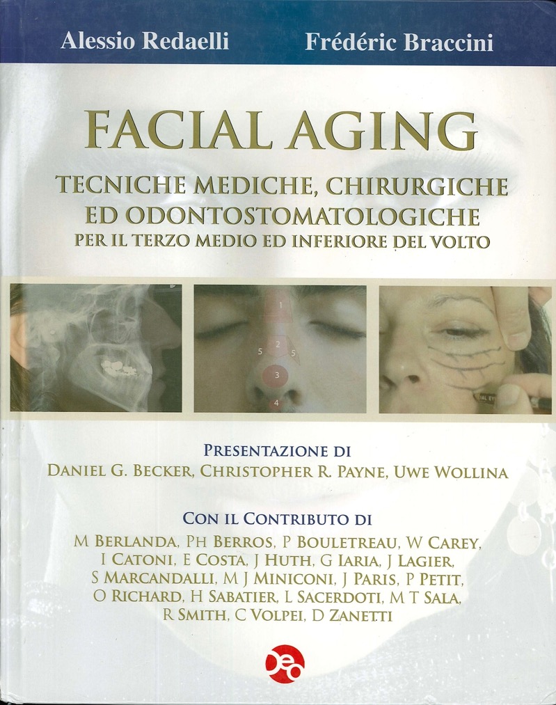 Sebbene un certo numero di pubblicazioni e presentazioni esistano in materia di aging del viso, queste sono spesso riferite solo ad un particolare problema, mentre, che io sappia, ci sono pochi testi che hanno trattato questo tema così a fondo, nel suo complesso, in un volume così ben illustrato e da autorità scientifiche così riconosciute. Le mie più vive congratulazioni ai Dr. Redaelli e Braccini, e ad ogni coautore, per questo pratico ed eccezionale libro.