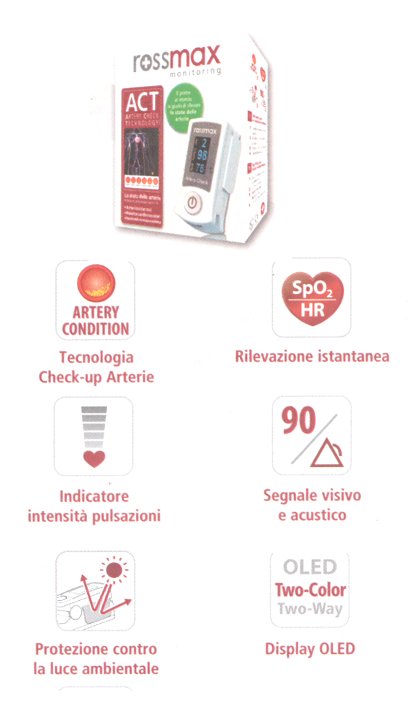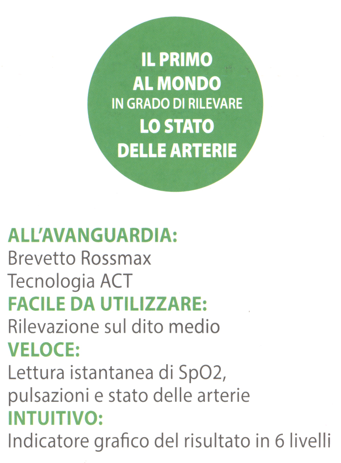 - Rilevazione istantanea di SpO2, pulsazioni e condizione delle arterie in un minuto