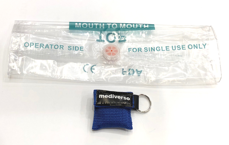 Mascherina rianimazione bocca a bocca con portachiavi BLU