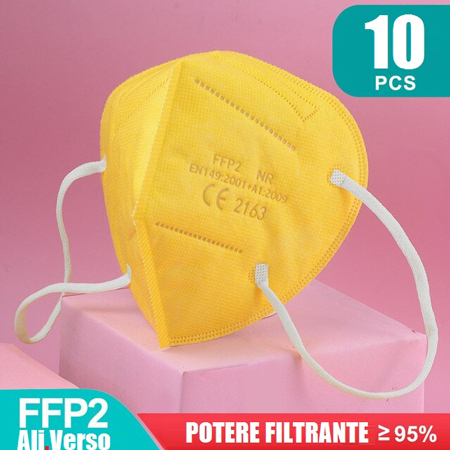 Mascherina FFP2 - KN95 DPI confezione 10 pezzi. Giallo