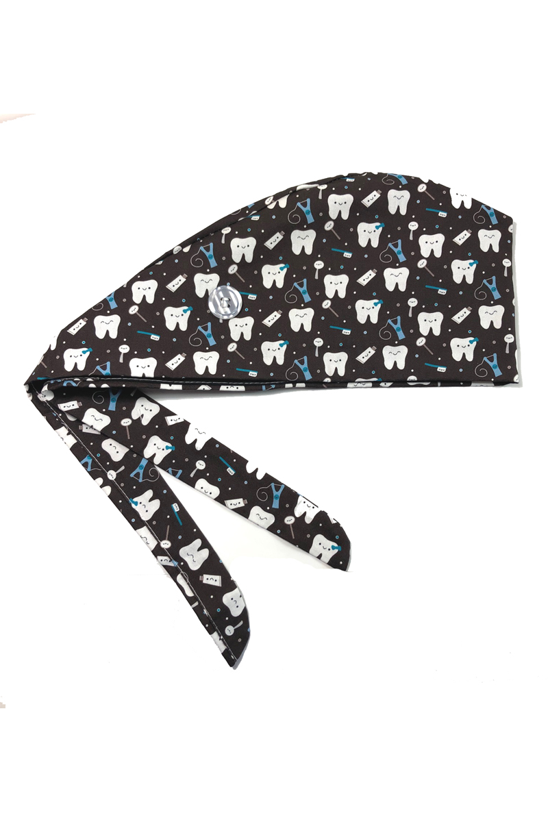 Nome: Bandana Medica Fantasia - Cuffia Unisex in Cotone con bottoni per mascherina Marrone scuro Fantasia Dental