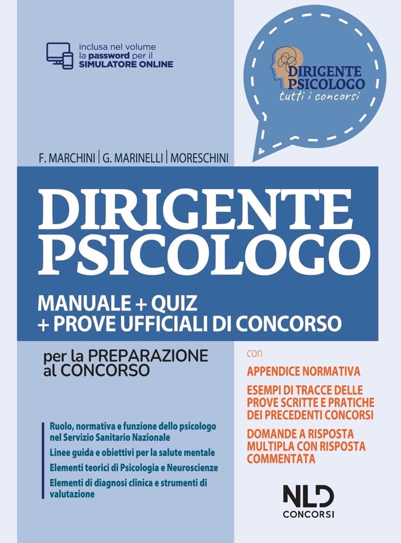 Questo processo di miglioramento è stato effettuato tramite un'analisi delle prove concorsuali passate e la considerazione delle richieste fatte dai nostri lettori. Il testo è diviso in quattro parti contenenti diversi approfondimenti relativi rispettivamente a:- il ruolo e la funzione del dirigente psicologo nel Sistema Sanitario Nazionale (prima parte);- teoria e metodi di psicologia generale, dello sviluppo, sociale e delle organizzazioni e neuroscienze (seconda parte);- diagnosi e nosografia nella prima, nella seconda infanzia e in età adulta e test per la valutazione diagnostica (terza parte);- domande a risposta multipla per l'esercitazione ai fini della prova preselettiva (quarta parte).Il volume è arricchito da una appendice contenente la documentazione inerente gli obiettivi condivisi sulla salute mentale (in Italia e a livello mondiale) e la legislazione in materia per lavorare all'interno del SSN.