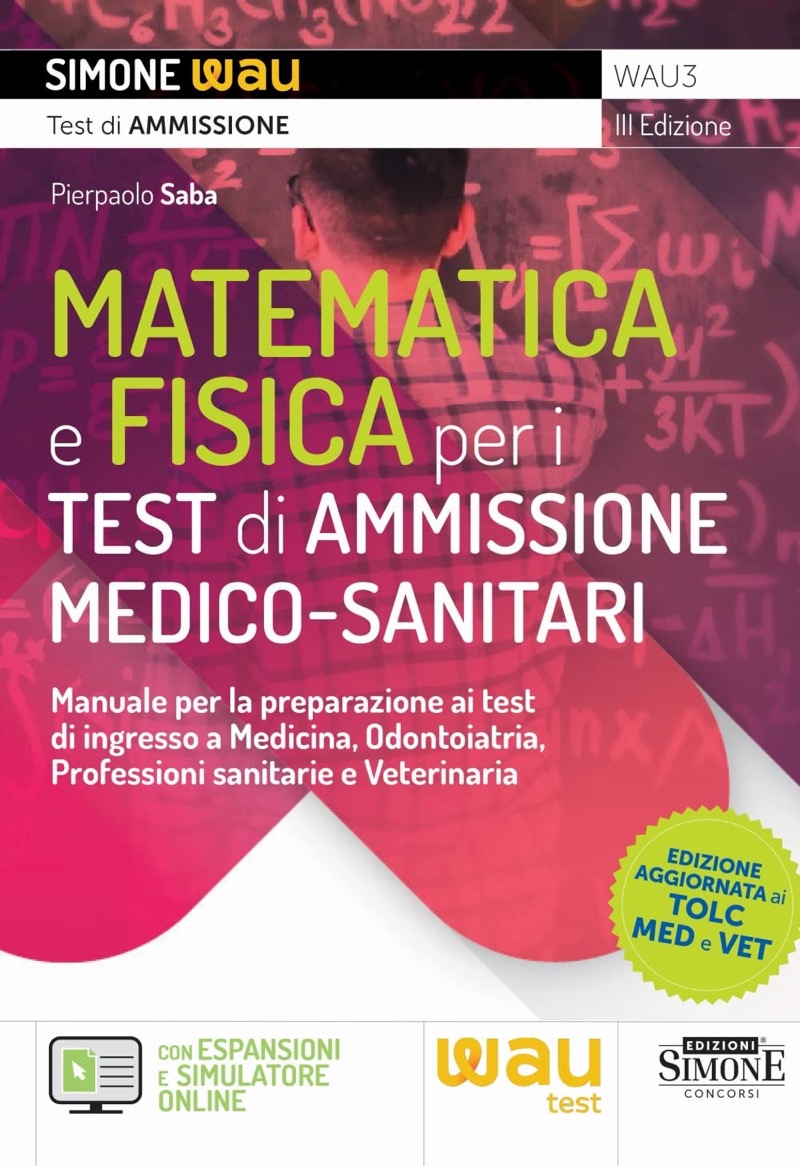 Il libro di Matematica e Fisica per il test di medicina e odontoiatria, veterinaria, aggiornato al TOLC Medicina e TOLC Veterinaria, e per il test per le professioni sanitarie è il risultato della condivisione dell’esperienza di Edizioni Simone, casa editrice leader da oltre 50 anni nel settore concorsi e selezioni universitarie, e WAUniversity, scuola di preparazione ai test di ammissione che da più di 10 anni aiuta ragazzi e ragazze a superare il test per Medicina, Odontoiatria, Veterinaria, Professioni sanitarie e Biotecnologie.