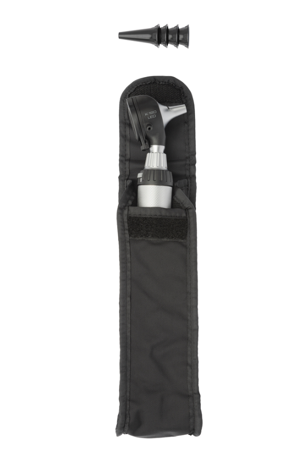Otoscopio K180 LED a F.O., BETA Manico a batterie, 1 set di 4 speculum riutilizzabili, astuccio morbido